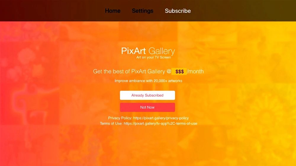 To install and use the PixArt Gallery TV App, you will need Apple TV or Fire TV or Android TV.